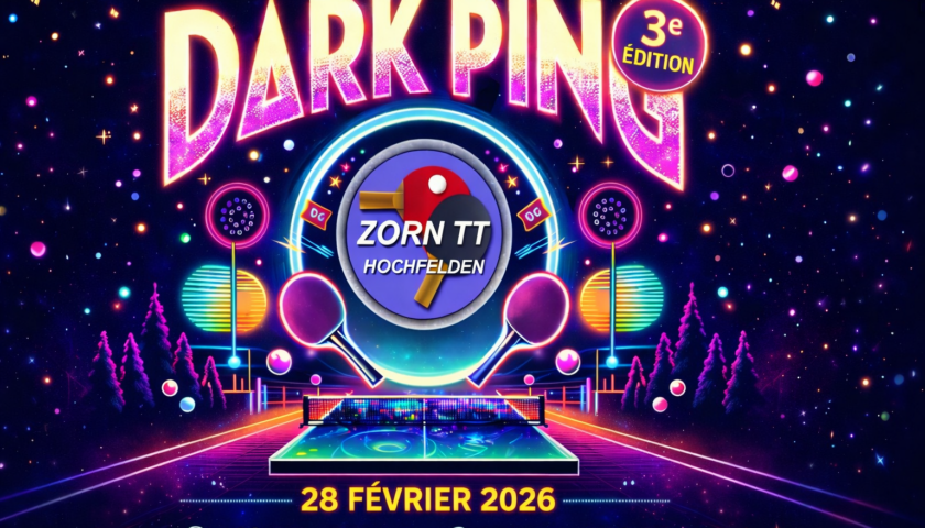 Le club Zorn TT Hochfelden vous propose une expérience originale : jouer au tennis de table dans l’obscurité totale, uniquement guidé par la lumière de la balle !
